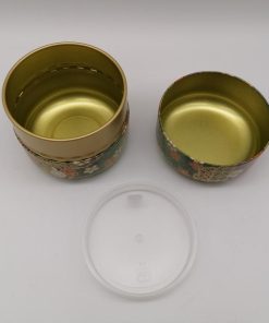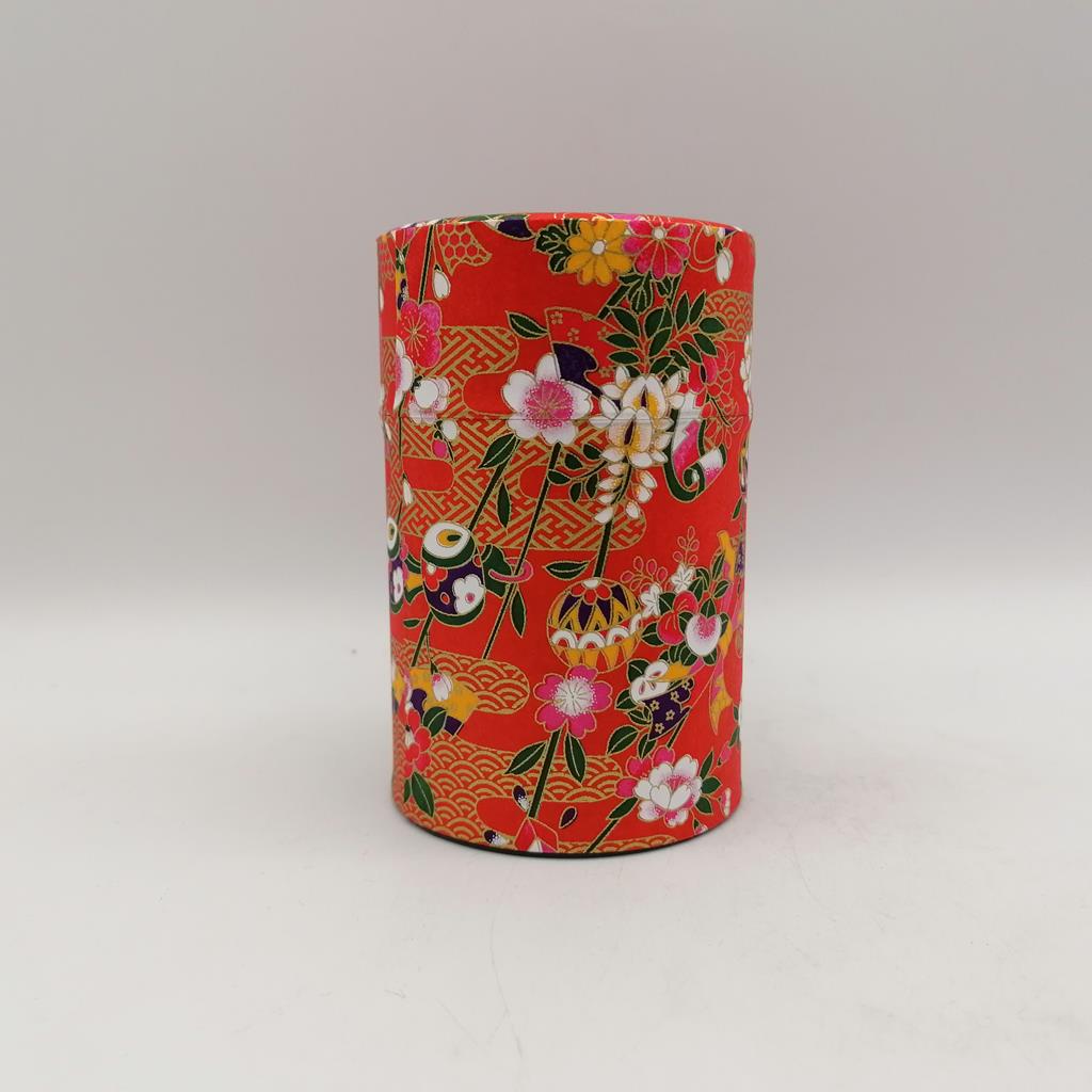 Porta tè in metallo con coperchio e tappo interno ermetico in plastica. Ricoperto all’esterno con splendida carta giapponese washi.