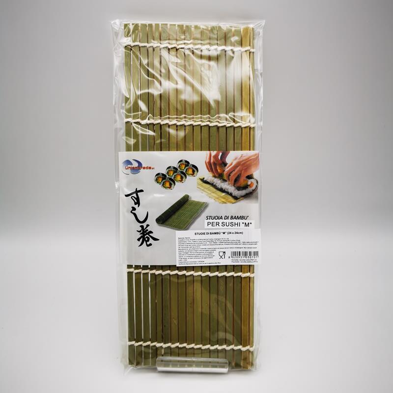 Questa stuoia si chiama “makisu”, è in bambù ed è un accessorio indispensabile per realizzare i maki, i sushi arrotolati nell’alga.